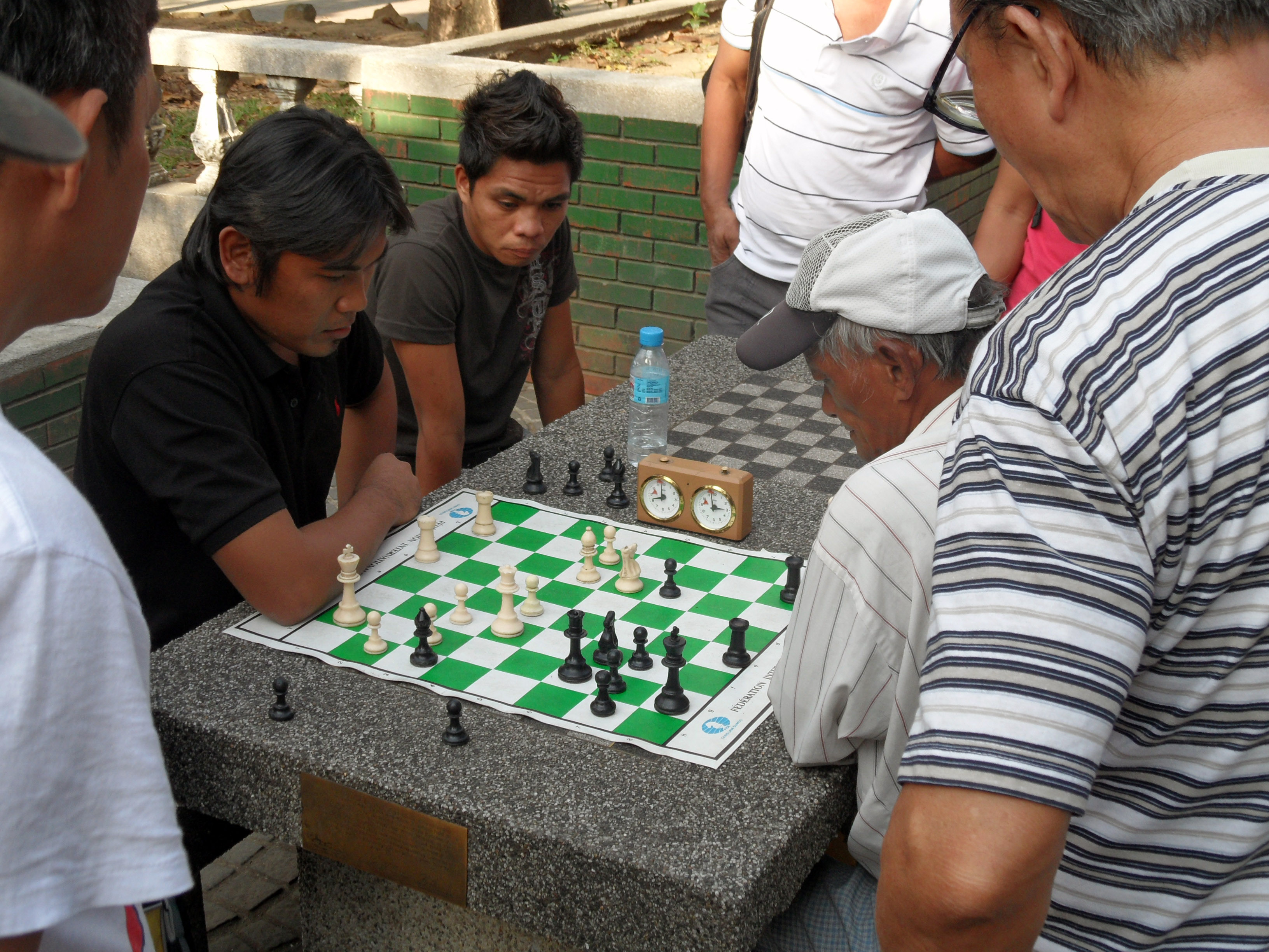 s'entraînent pour un flash mob. Des moins jeunes jouent aux échecs. Le parc est sympa. L'ambiance est agréable.