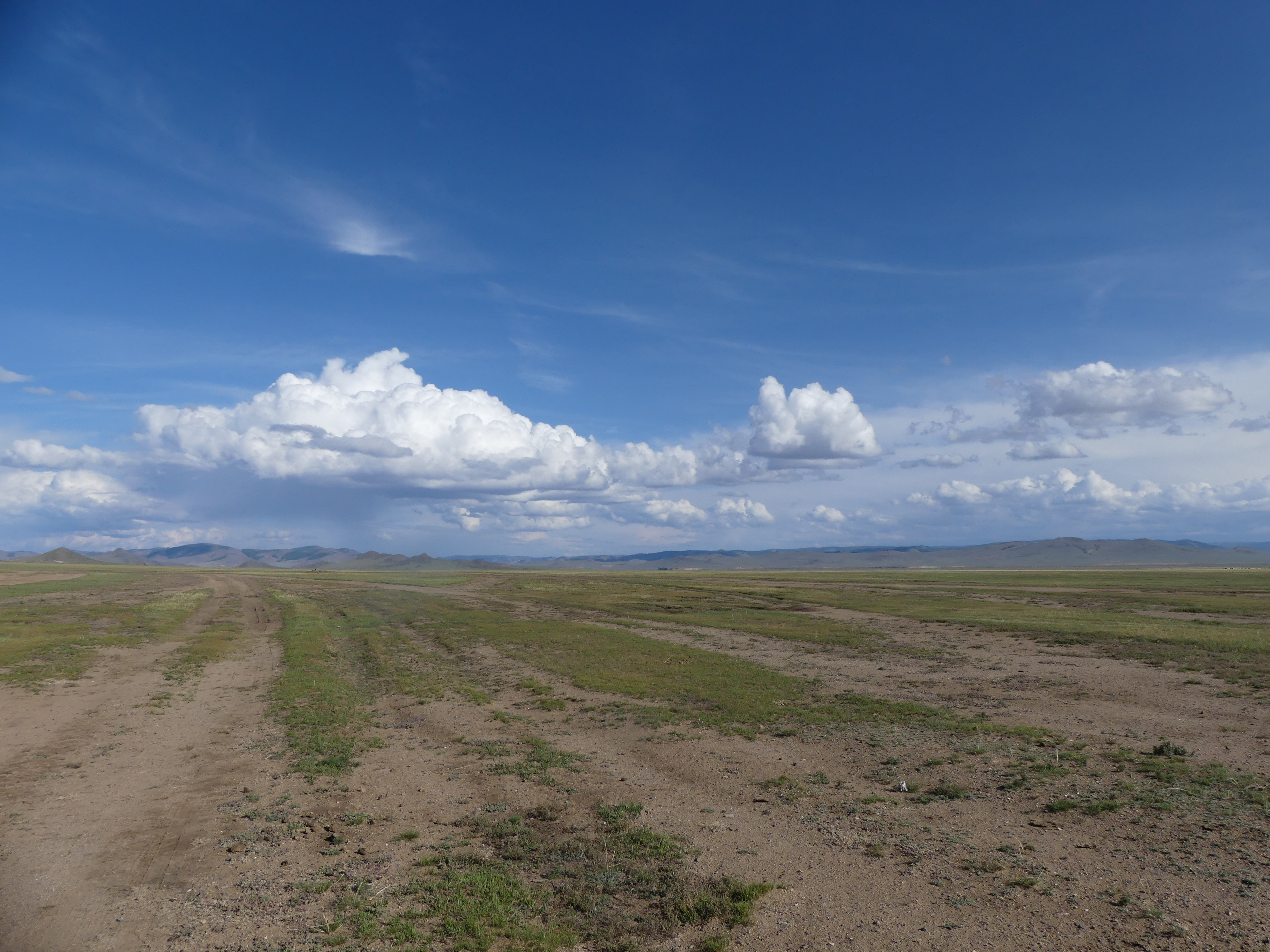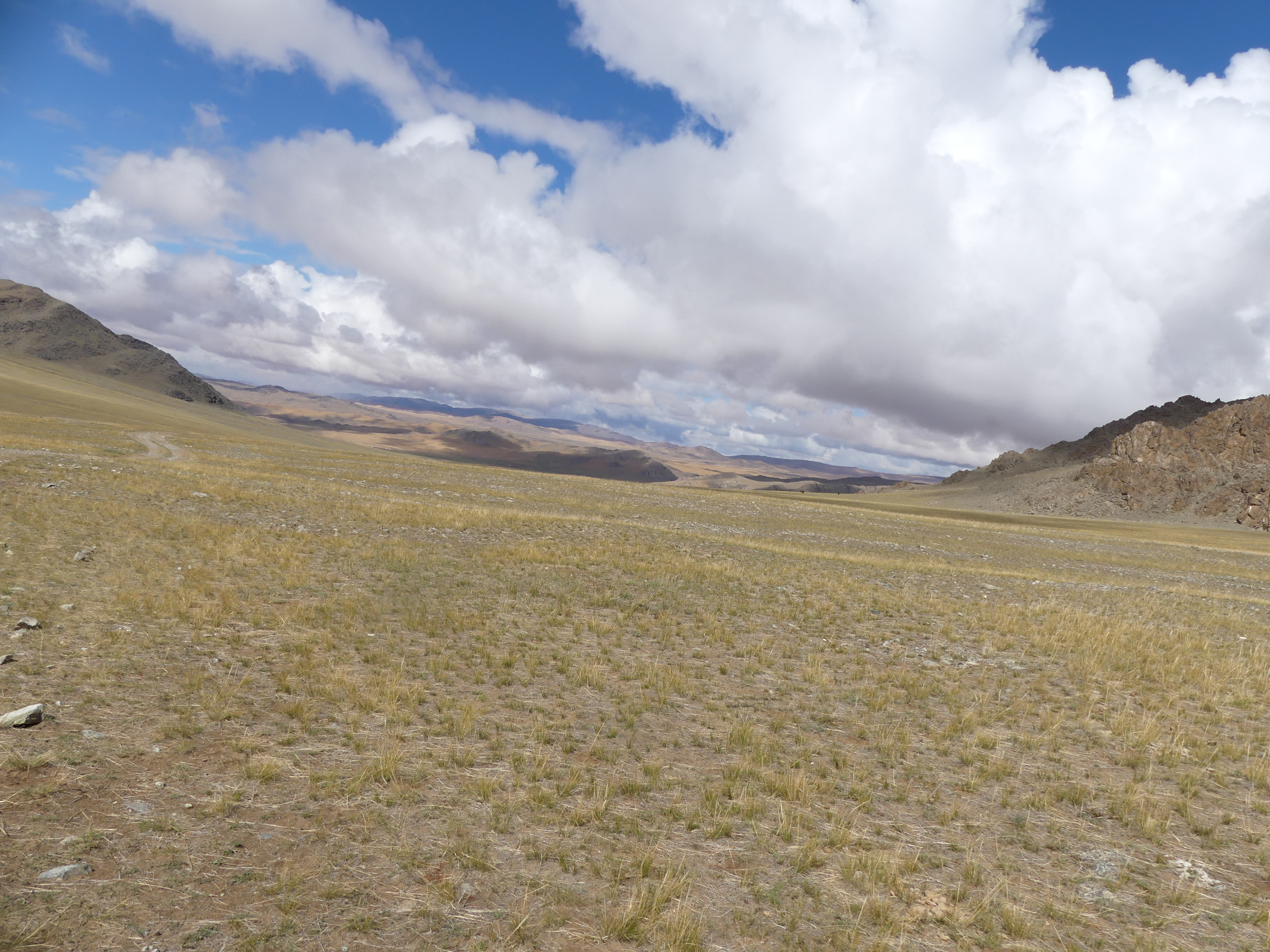 La piste est longue, et plus on avance plus la végétation devient diffuse. Les nuages s’accumulent hélas (eh oui j’avais dit qu’on avait eu 4 jours de pluie, donc il ne pleut pas encore mais les nuages arrivent).