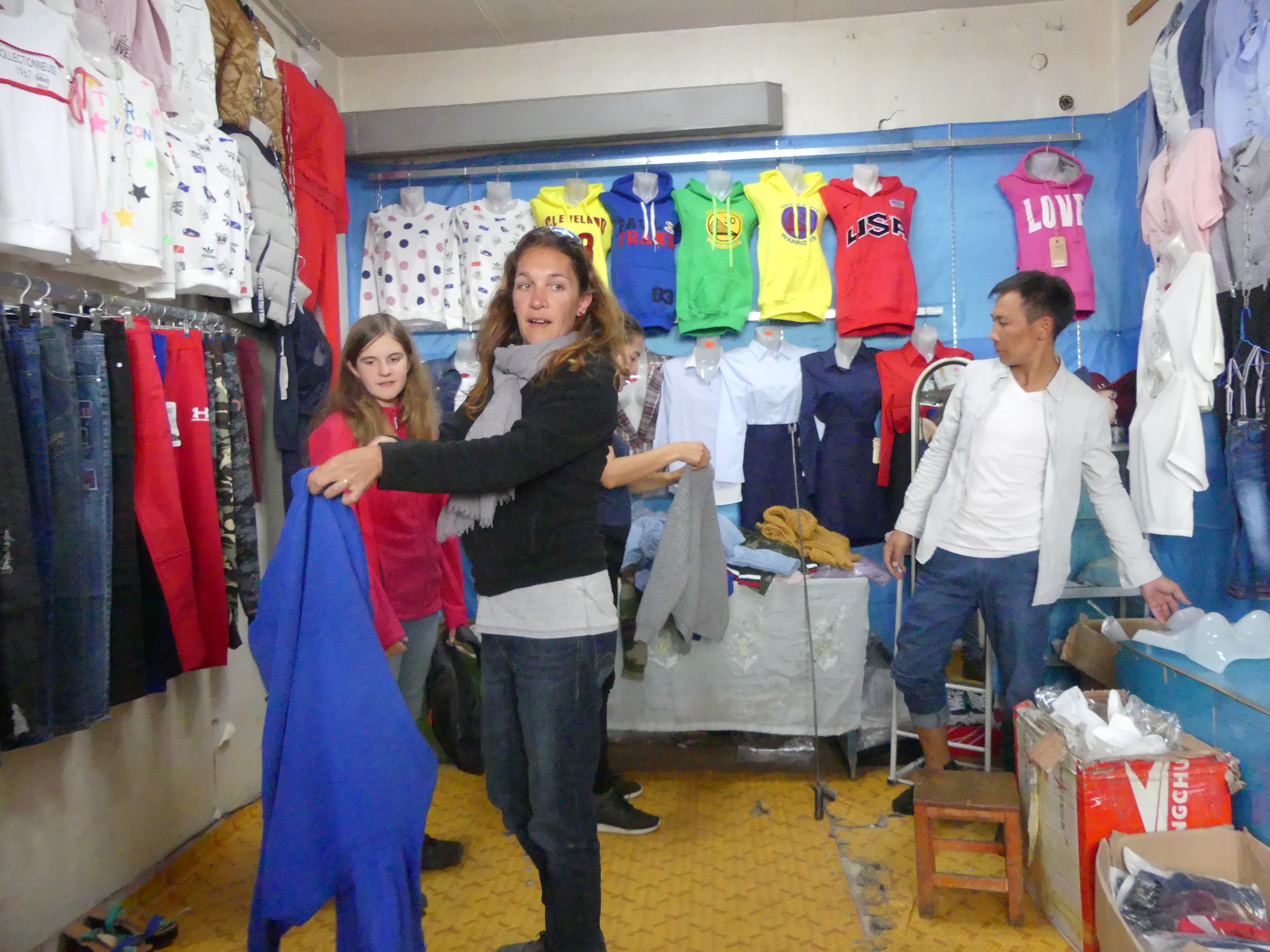 On achète des sweats pour les filles car il fera froid dans les montagnes par la suite. On achète aussi des bonnets ! Prix du sweat à capuche : 18 000 ₮ (soit environ 6,30€) : on aurait du mal à